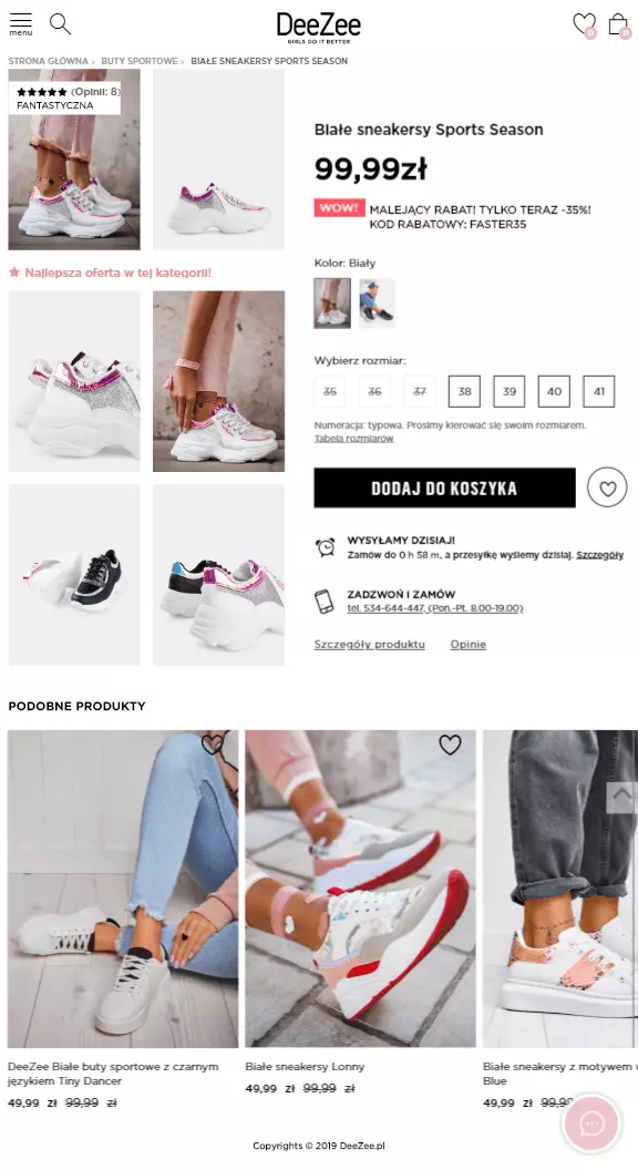 Aż 74% klientów czuje frustrację, gdy otrzymuje spersonalizowane rekomendacje, które nie mają nic wspólnego z ich zainteresowaniami. Jeżeli silnik rekomendacji działa dobrze, spersonalizowane newslettery osiągają nawet o 27% wyższy CTR, 11% wyższy CTOR i dwa razy więcej transakcji, w porównaniu do niespersonalizowanych mailingów. Warto zainwestować w platformę, której silnik rekomendacji działa wydajnie i mądrze. Sekcja podobne produkty na DeeZee.pl prezentuje podobne kolorystycznie buty z tej samej kategorii